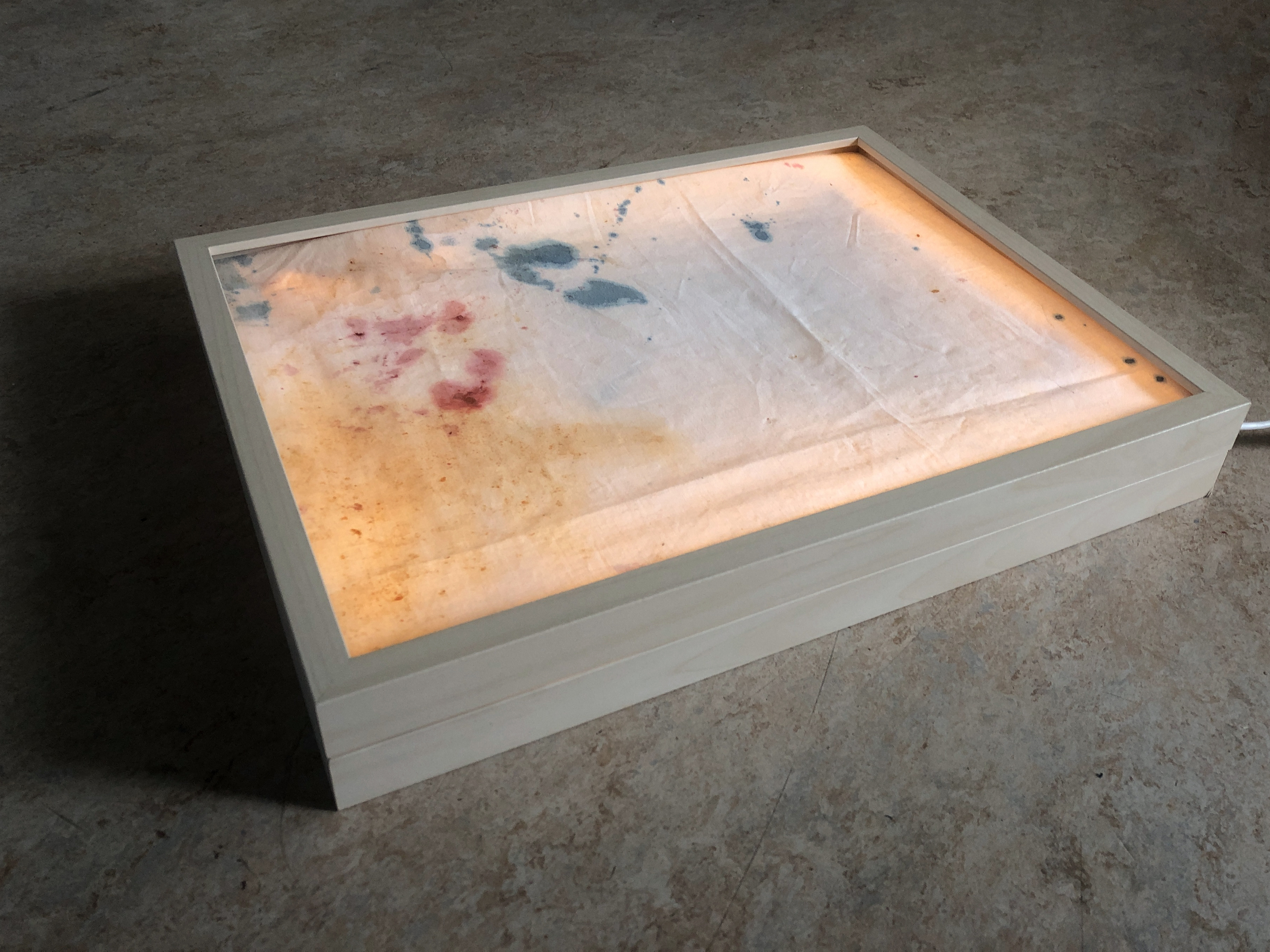 stained table cloth, IKEA picture frames, led strip light