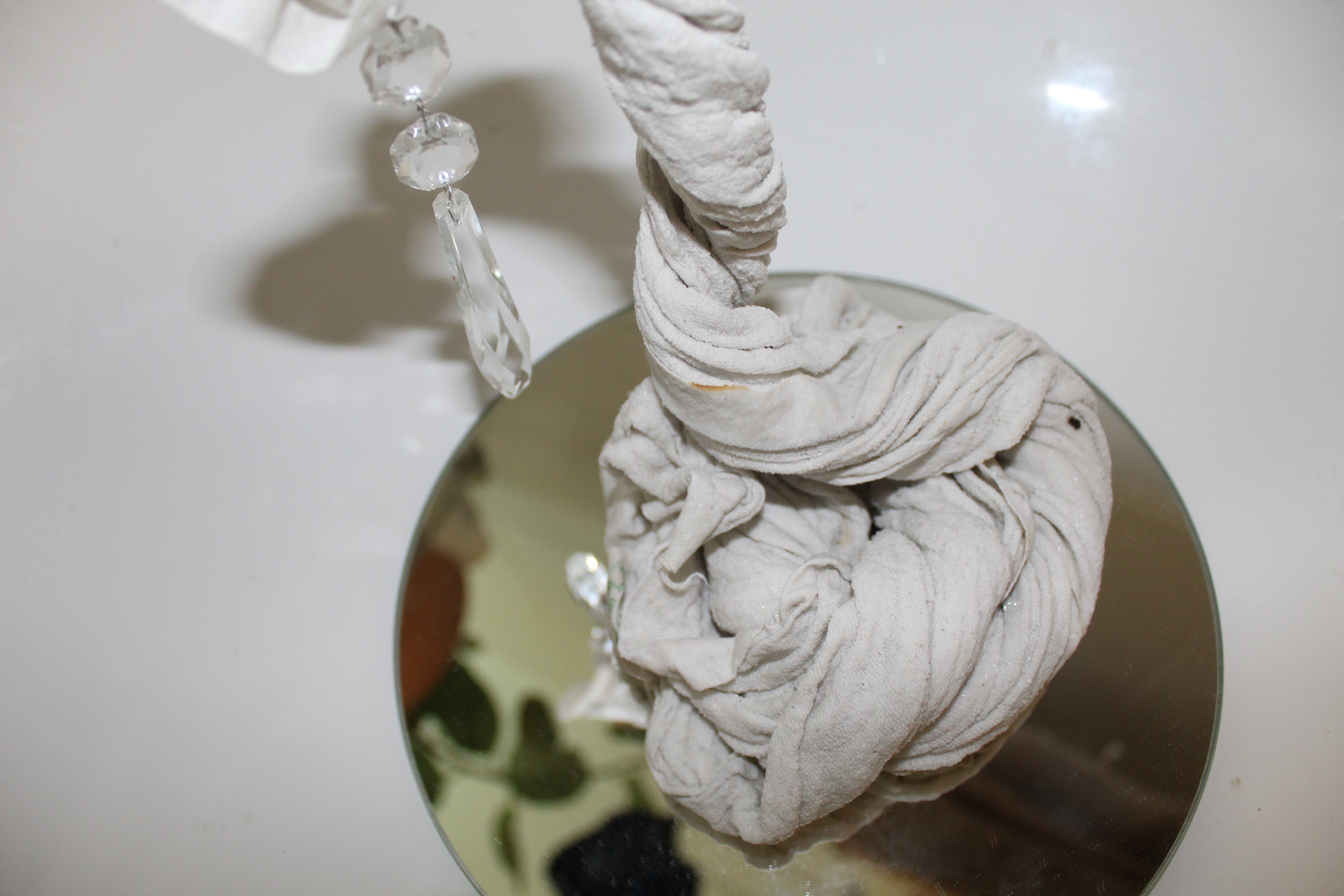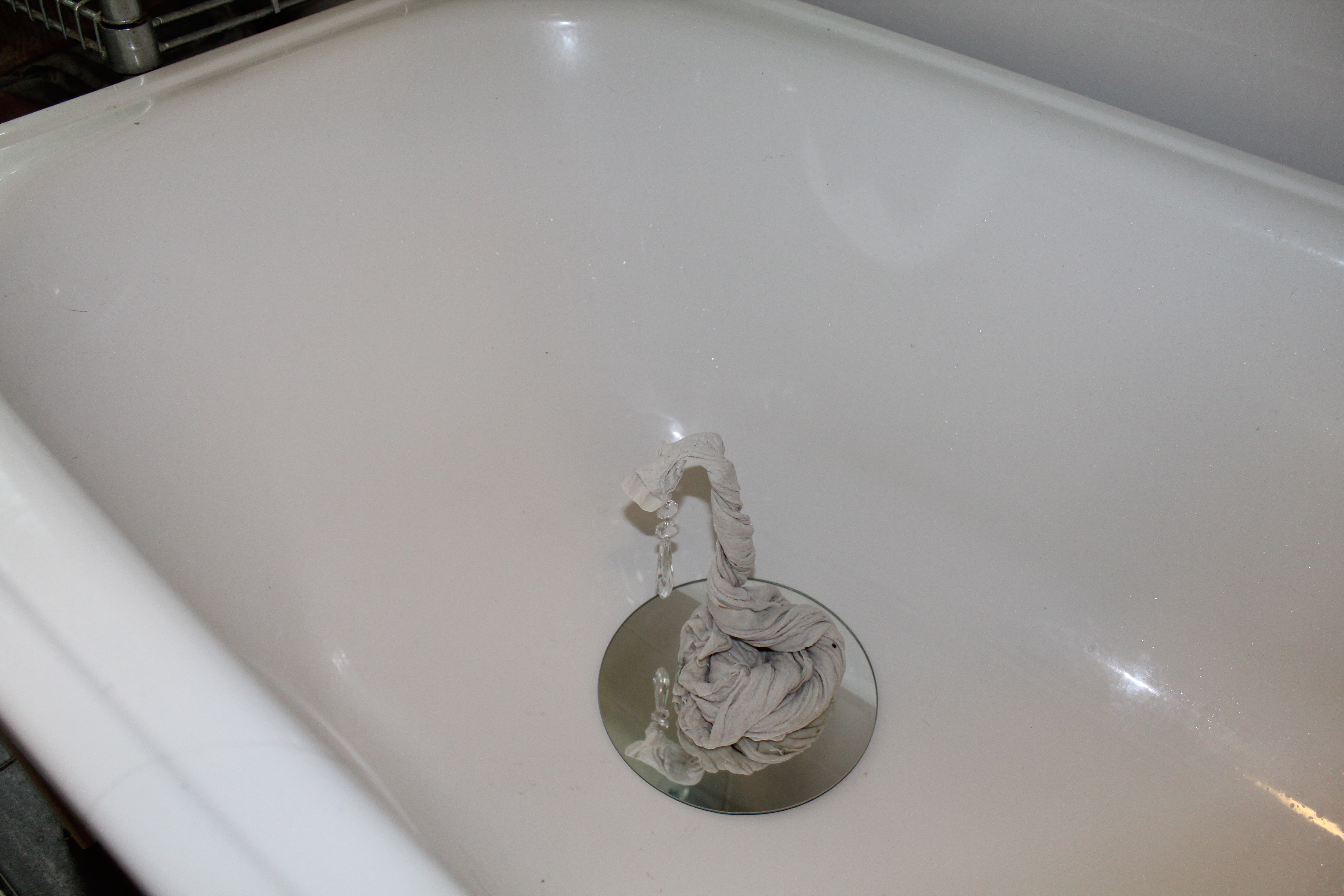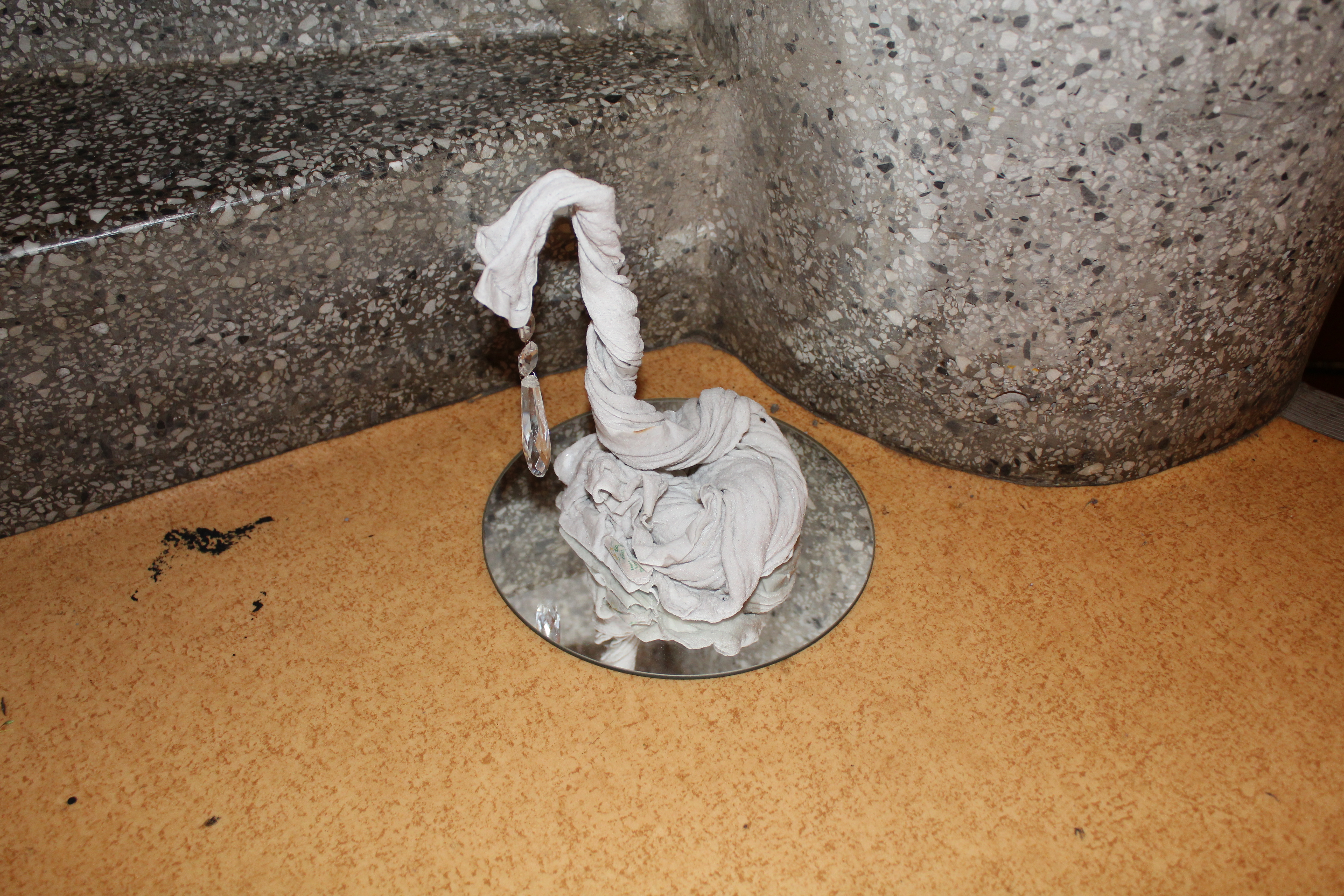 ‘Bathroom tornado’Washcloth, jesmonite, hair, plaster, resin, glazed tile